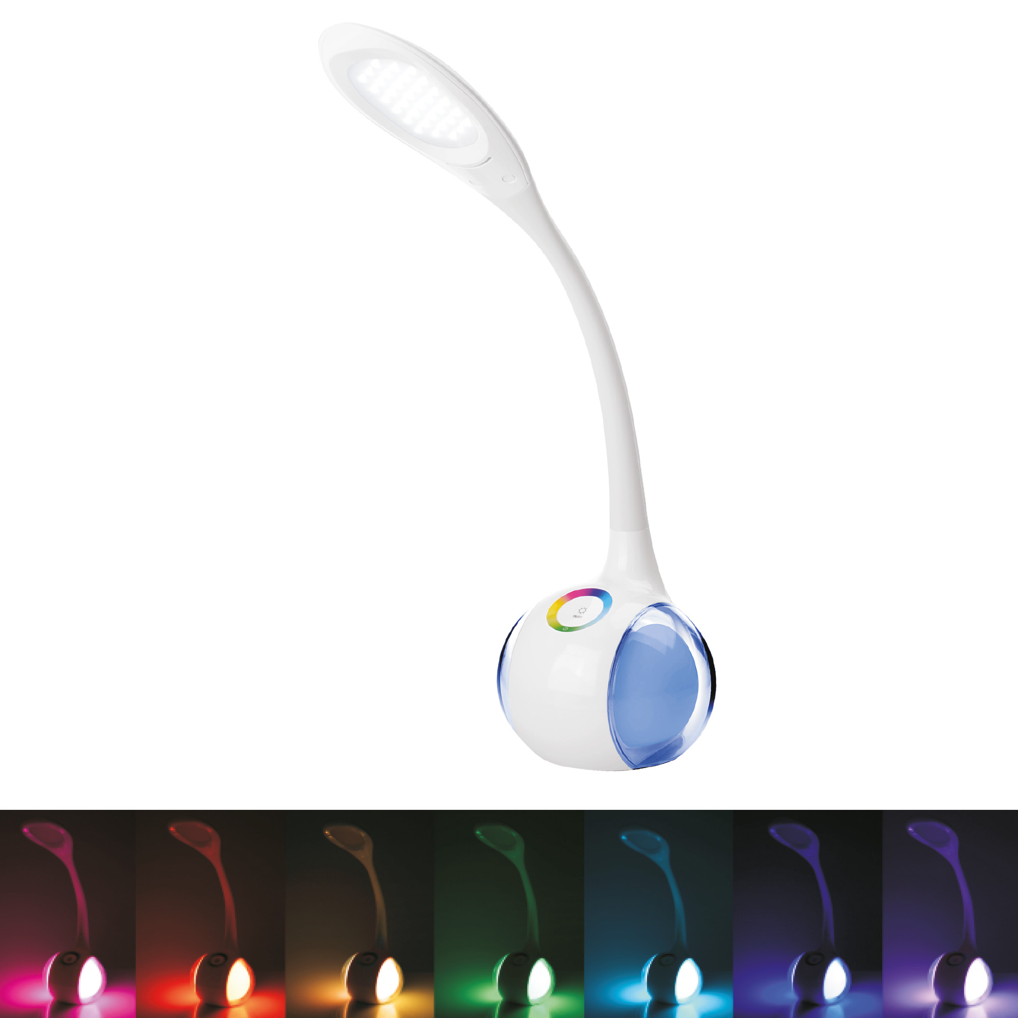 The base of the lamp also features a colour changing mood light (also useful to use as a therapeutic lamp). It can be set to the users preferred colour or can be set to cycle through the colour spectrum automatically.